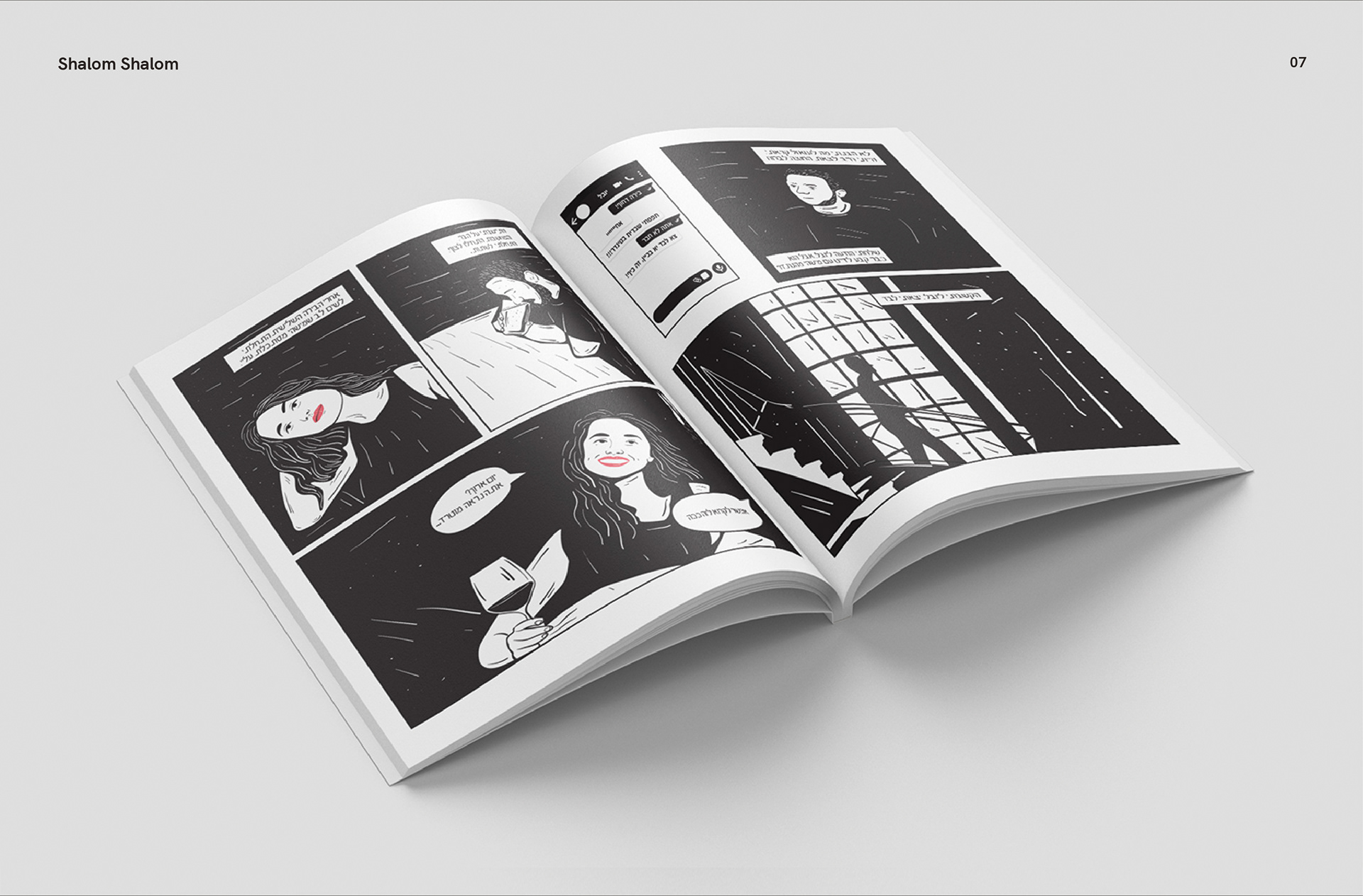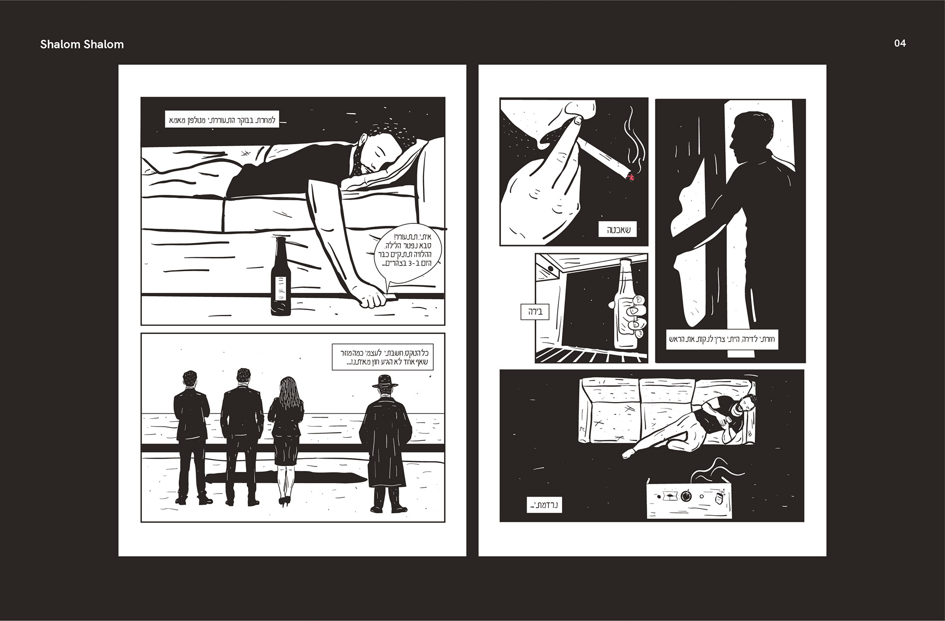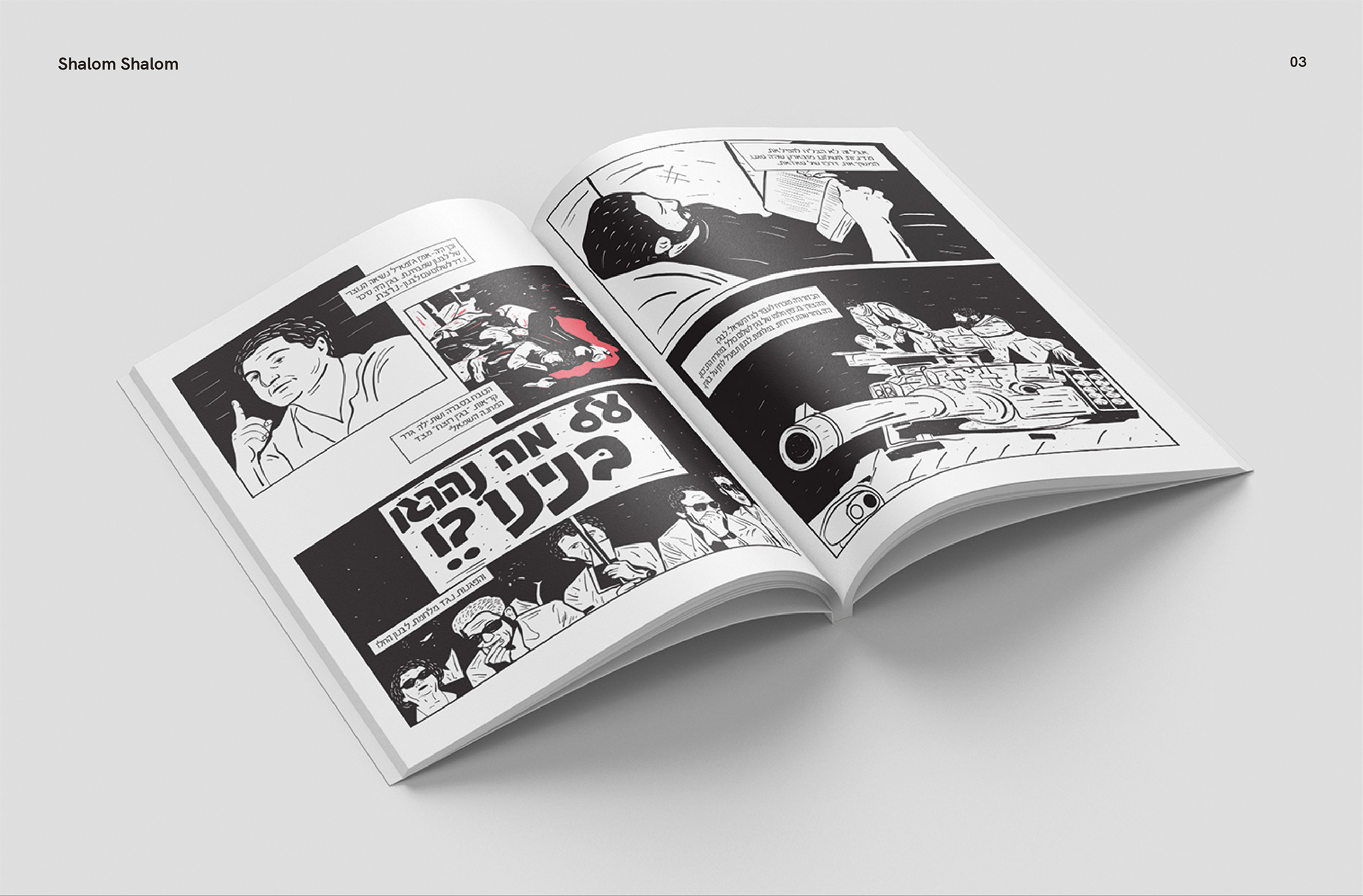 Shalom Shalom, is a graphic novel created for my final project of my Visual communication design degree in HIT. The graphic novel discusses a fiction conspiracy to eliminate peace in the middle east.