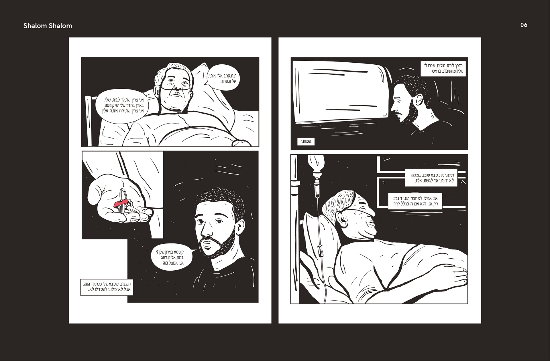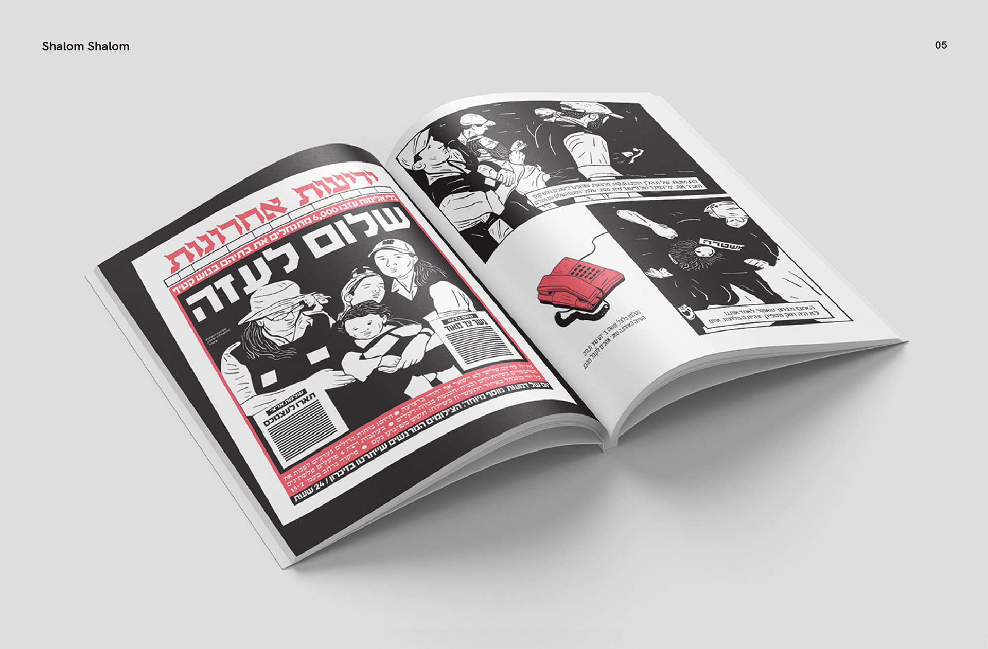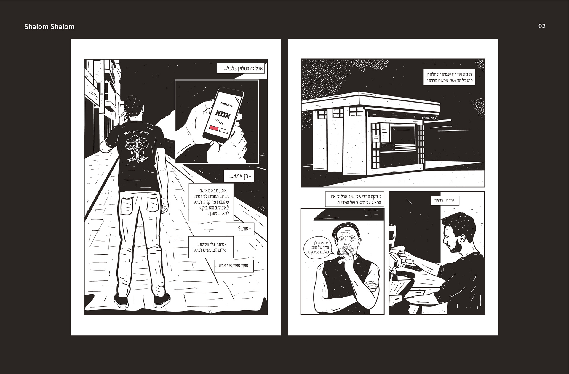 Shalom Shalom, is a graphic novel created for my final project of my Visual communication design degree in HIT. The graphic novel discusses a fiction conspiracy to eliminate peace in the middle east.