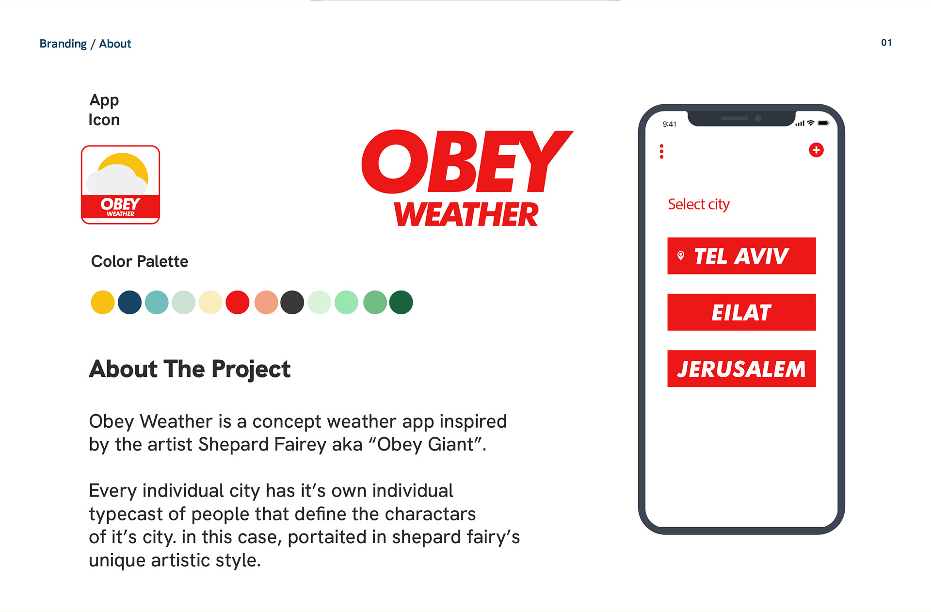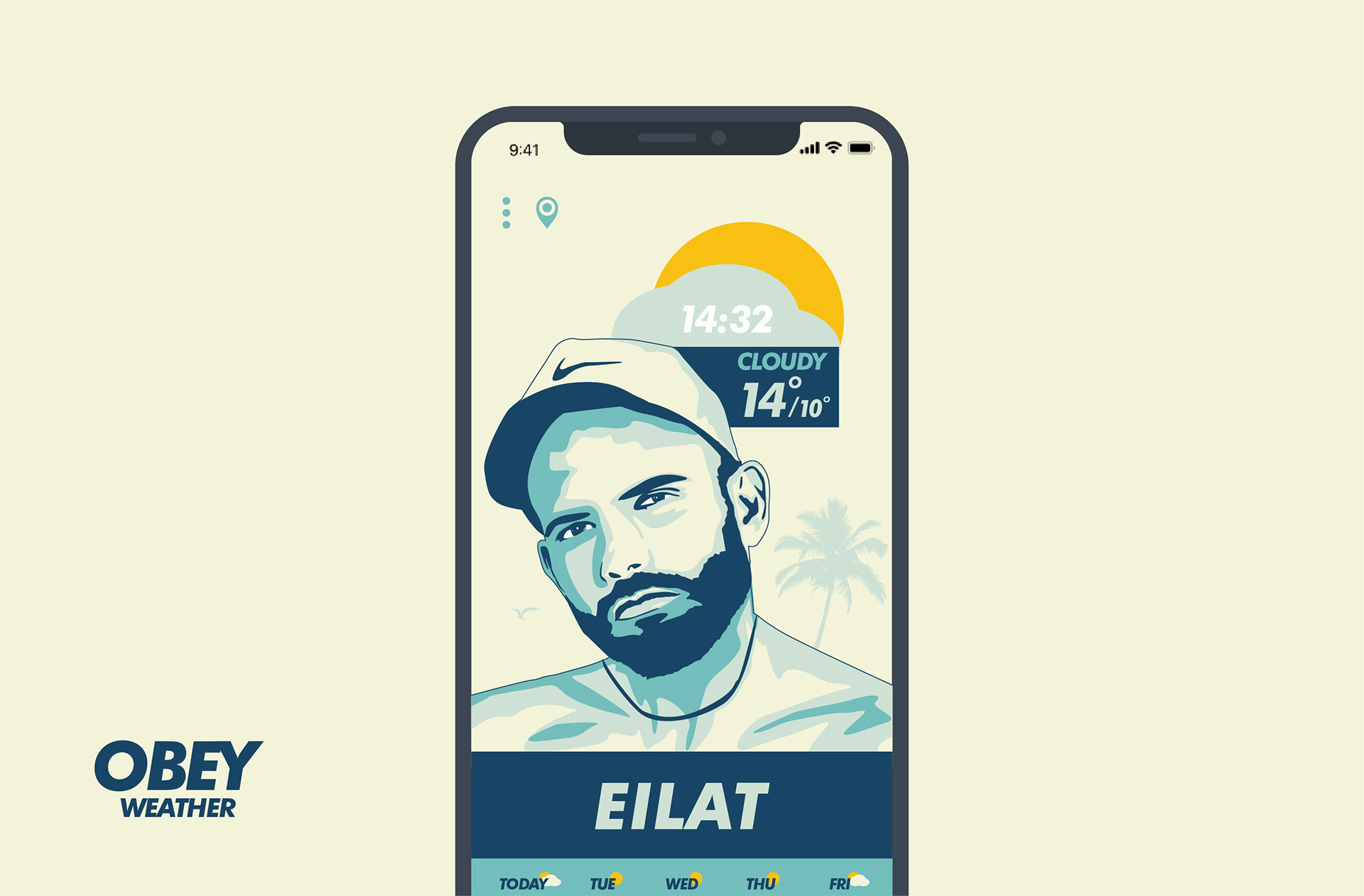 Obey Weather is a concept weather app inspired by the artist Shepard Fairey aka “Obey Giant”. This Project made during my Visual communications studies.